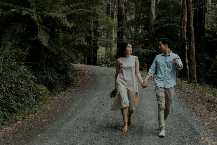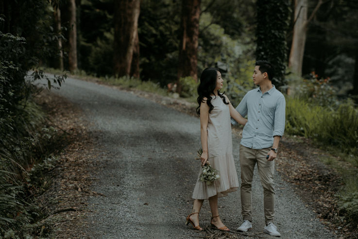 It was a rainy day in Dandenong range. Amy and Gavin, an amazing couple came from different cultures but found each other in Melbourne a few years ago and just got engaged. They decided to escape to the nature before their wedding day and wanted to have something only belongs to them. We spent some time together walking through the bush and mountain, also we passed by a cute little town called Olinda. It was truely moving to see two people so in loved.