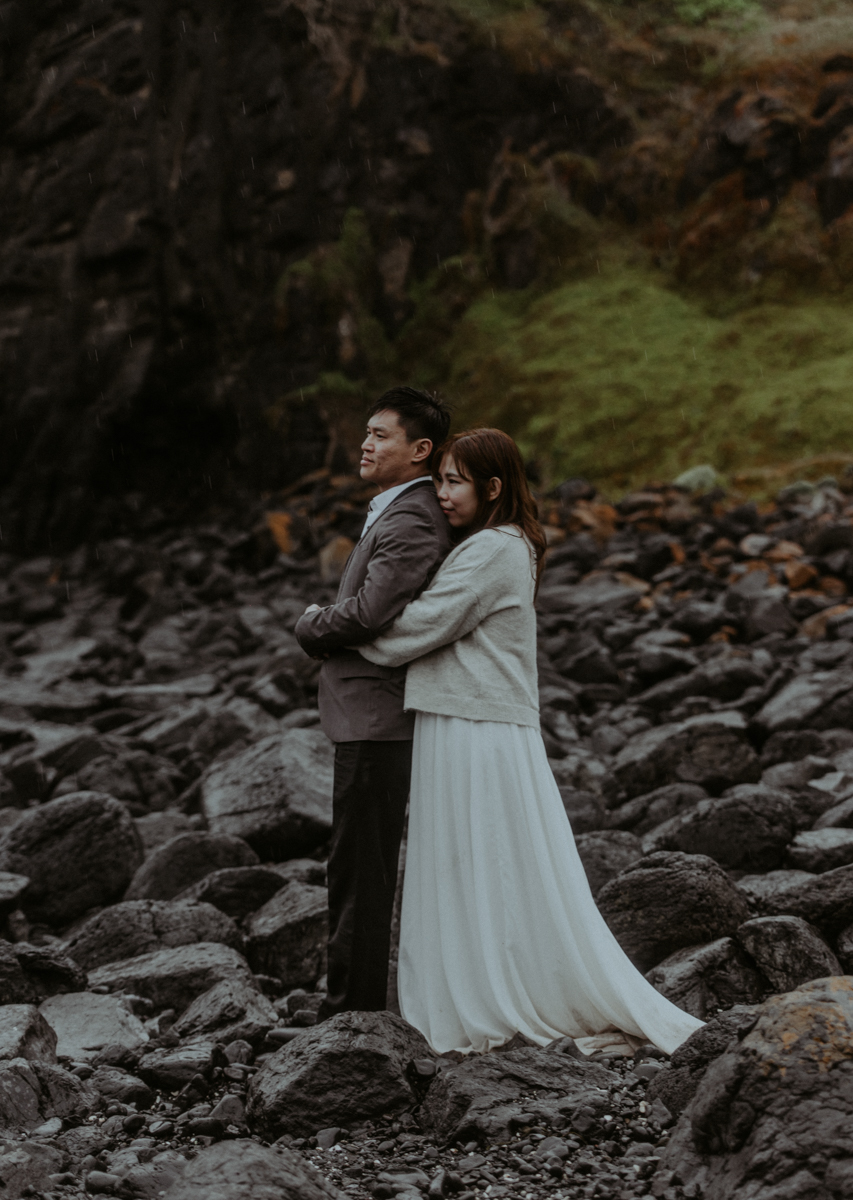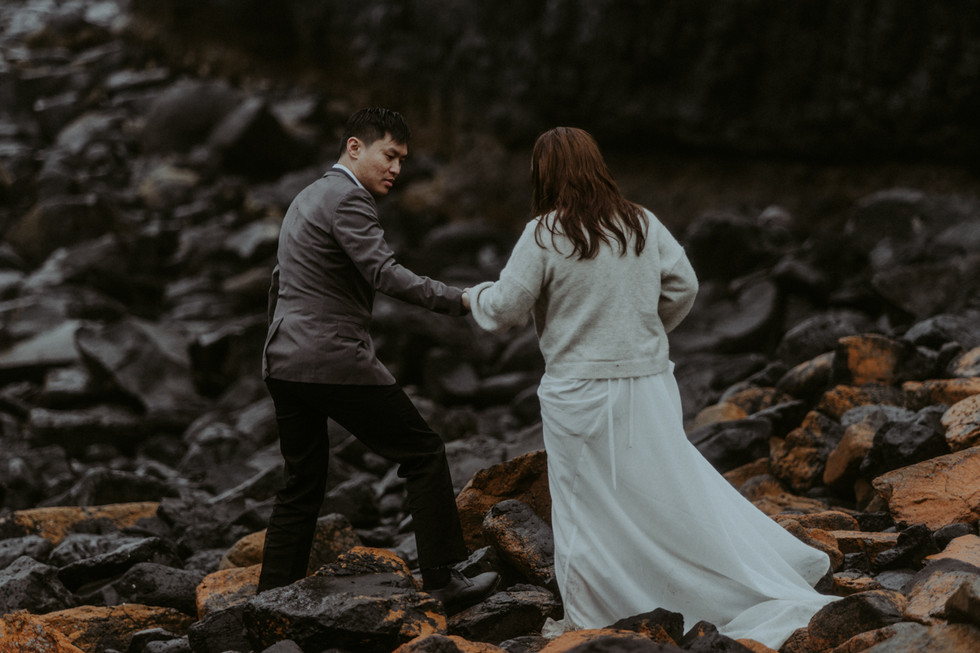Weather in Melbourne is always unpredictable and this was a day of sunshine and showers. We spent the afternoon in a beautiful little forest with a lots of pine trees, then we headed to the cliff to wait for the sunset. However, the sky started getting a little dark and gloomy, then the heavy rains were pouring. May and Thomas decided to walk in the rains and enjoy the wind. We hiked about 1 hour on the cliff and we went down to the rocky beach, they said their 'I do's"... it was my favourite moment of the day.